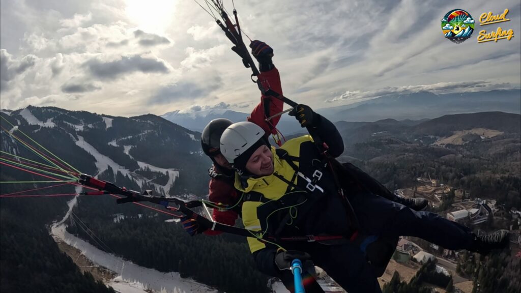 O zi caldă de iarnă, zăpadă strălucitoare și un zbor cu parapanta în tandem plin de emoție alături de Valentina, din Postăvaru spre Poiana Brașov. Spirale line, peisaje spectaculoase și promisiunea unei reveniri la vară.