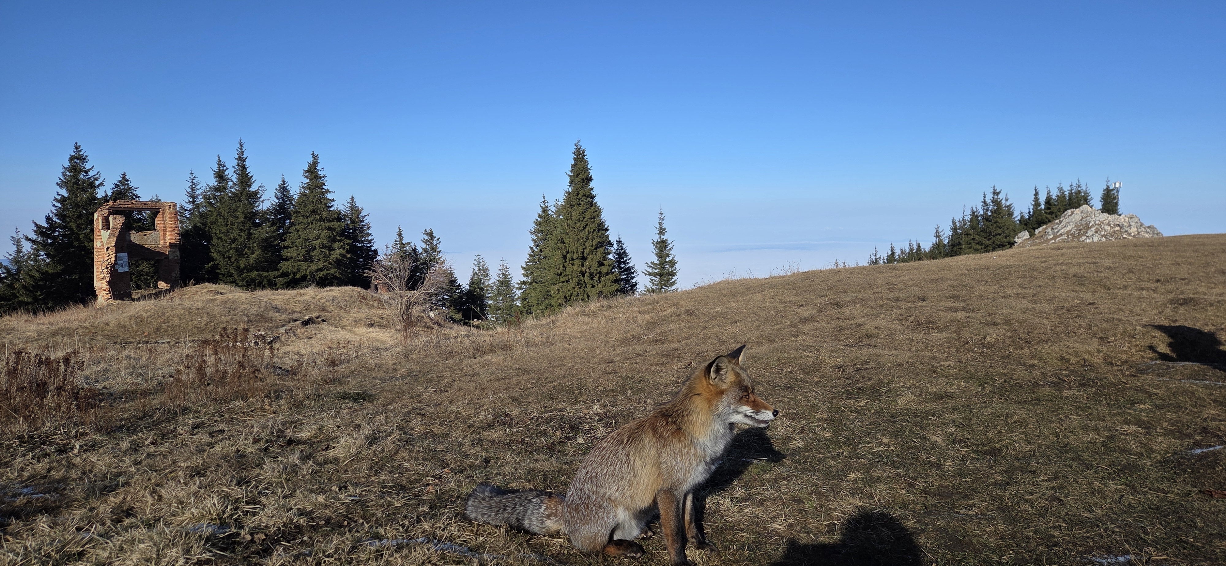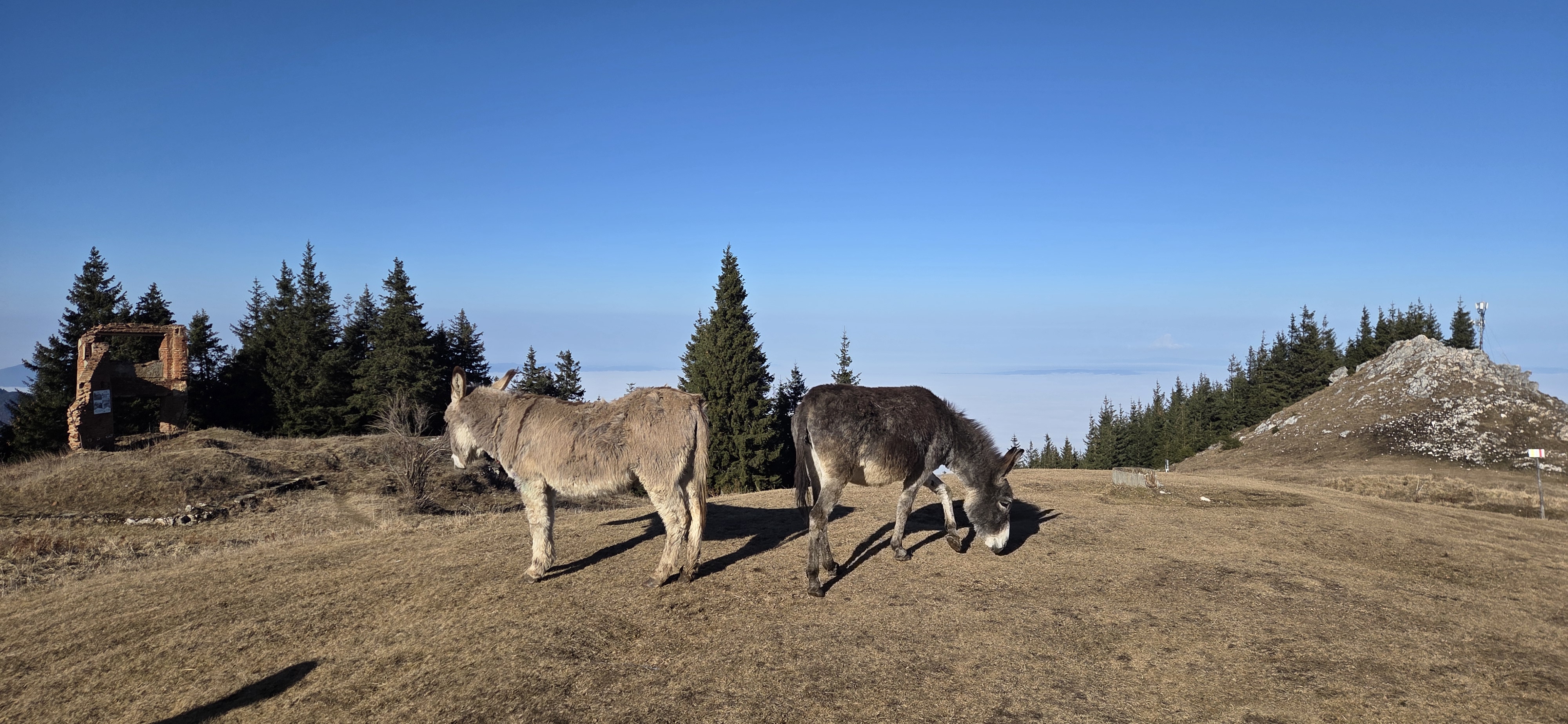 Ajunși la Cabana Piatra Mare, suntem întâmpinați de personaje deja celebre: vulpița nelipsită și câțiva măgăruși curioși. Sus, vremea este complet diferită de cea din vale: