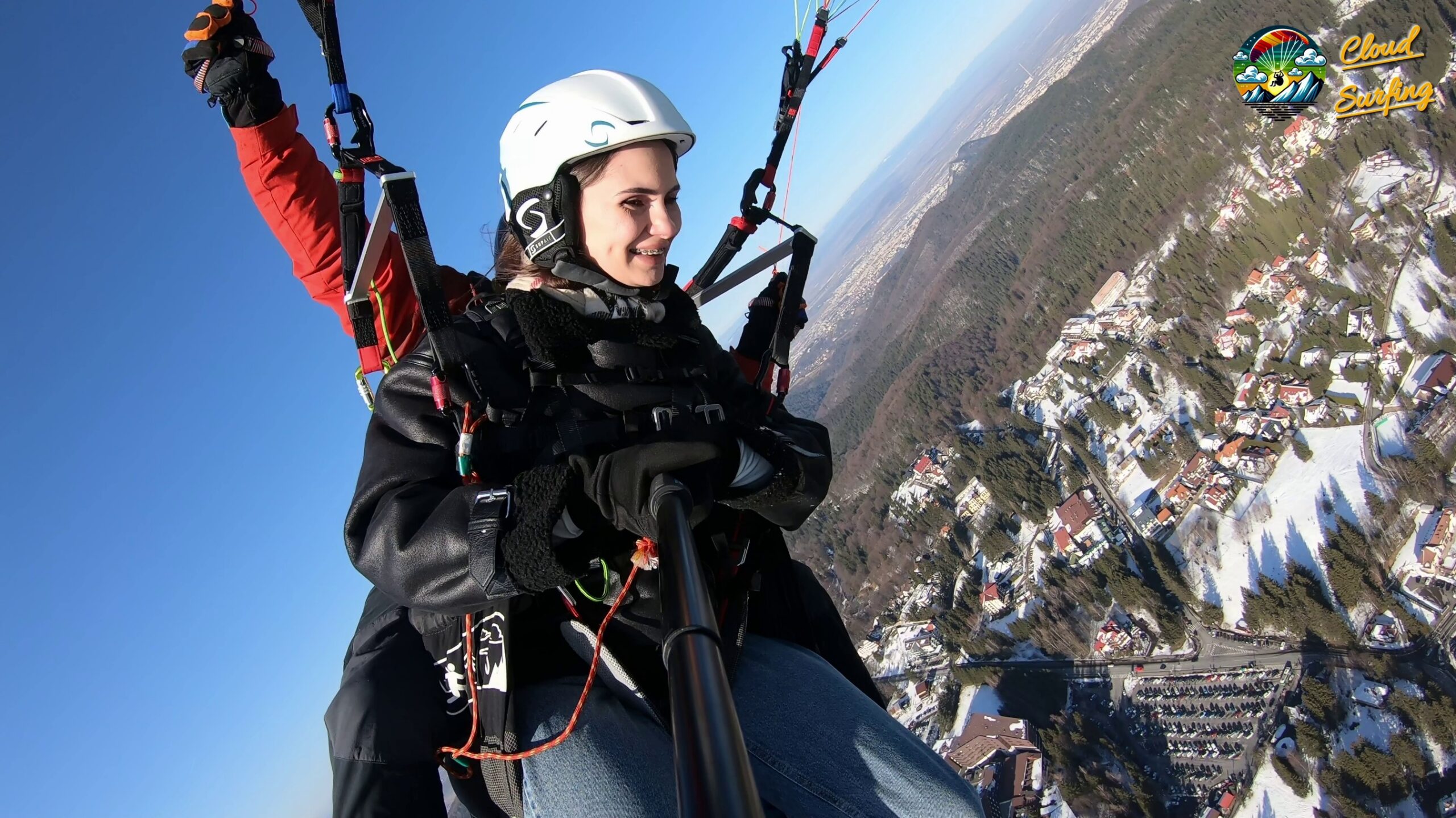 Karina a reacționat exact cum îți dorești într-un zbor parapanta tandem dinamic: entuziasm, energie și încredere totală.